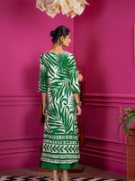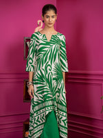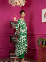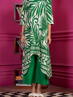 Be the centre of attention all season long with our green high low kurta set. Made with cotton fabric, this features a high low kurta with elbow length sleeves and hook and eye round neckline. This set is completed with elasticated pants.