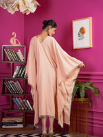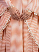 Elevate your wardrobe with this stunning orange kaftaan crafted from orange fabric with pearl lace detailing at the hem of the sleeves and kurta. Embrace simplicity with a touch of grace in this beautifully coordinated...