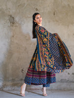 Introducing an enchanting masterpiece, this suit epitomizes elegance and tradition. Crafted in a rich blend of vibrant blue and earthy hues, it boasts intricate floral and geometric patterns that exude timeless charm. The flowing silhouette flatters every figure, while the delicately designed dupatta adds a touch of grace. Perfect for festive occasions or intimate gatherings, its comfortable yet regal design ensures you stand out effortlessly. The fine detailing on the neckline and borders reflects exceptional craftsmanship, making it a statement piece. This suit is not just an outfit—it’s a celebration of culture, sophistication, and individuality. A must-have for your wardrobe!