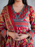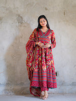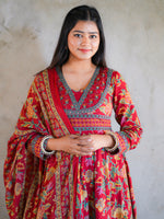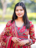 Introducing an enchanting masterpiece, this suit epitomizes elegance and tradition. Crafted in a rich blend of vibrant red and earthy hues, it boasts intricate floral and geometric patterns that exude timeless charm. The flowing silhouette flatters every figure, while the delicately designed dupatta adds a touch of grace. Perfect for festive occasions or intimate gatherings, its comfortable yet regal design ensures you stand out effortlessly. The fine detailing on the neckline and borders reflects exceptional craftsmanship, making it a statement piece. This suit is not just an outfit—it’s a celebration of culture, sophistication, and individuality. A must-have for your wardrobe!