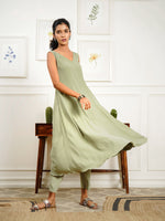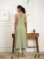 Fun and flirty, our mint green sleeveless kurta set is designed for your shopping dates to brunch dates where you will be the center of attention. Made in mint green fabric with front pleat details,...