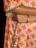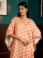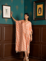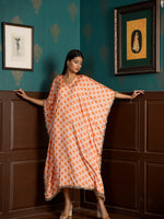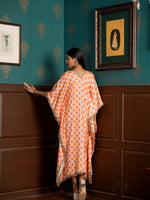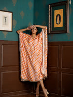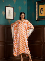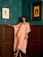 Elevate your ensemble for festive wear with this exquisite orange pink kaftan exuding sophistication.